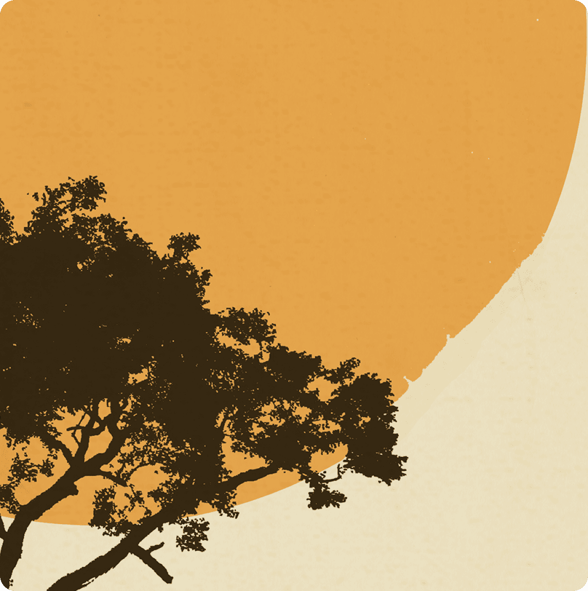 The visual system pulls from mid-century poster design. Warm color blocking, silhouetted trees, geometric shapes that echo barrel geometry. Typography stays utilitarian. The distressed texture gives it weight without feeling forced.