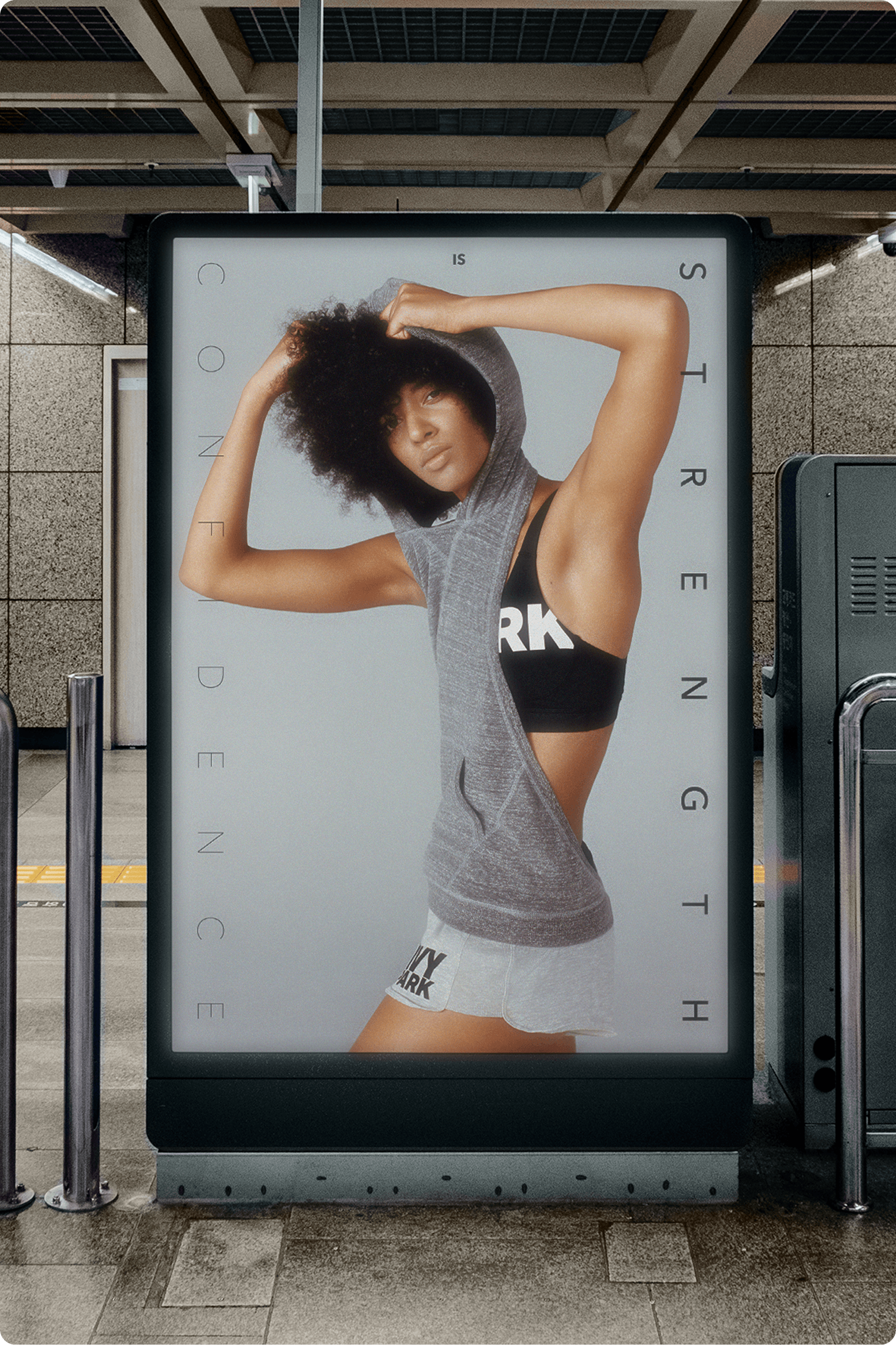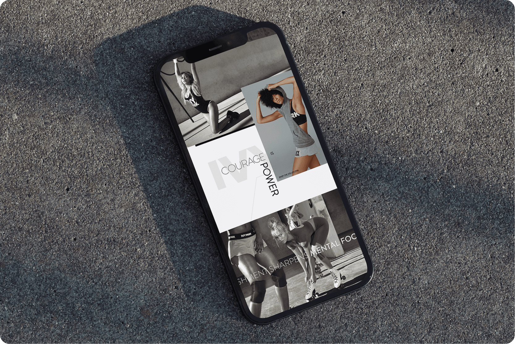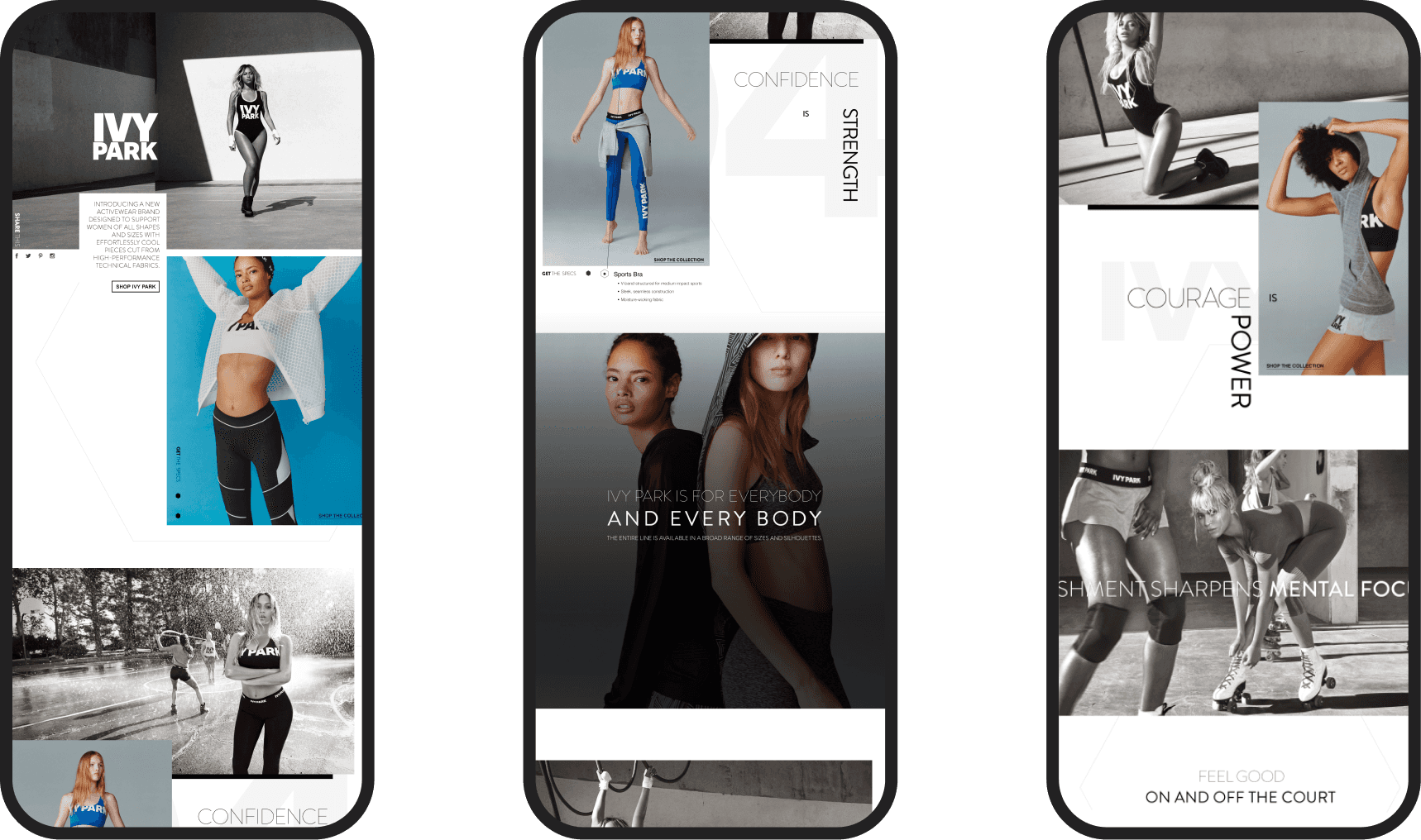 The polygon became a signature element. Started as a framing device for portraits, then animated and carried across the full experience. Typography, layout, motion. "Confidence is Strength." "Courage is Power."